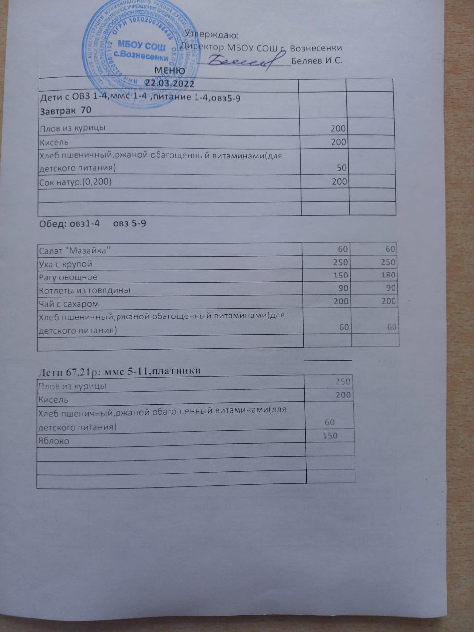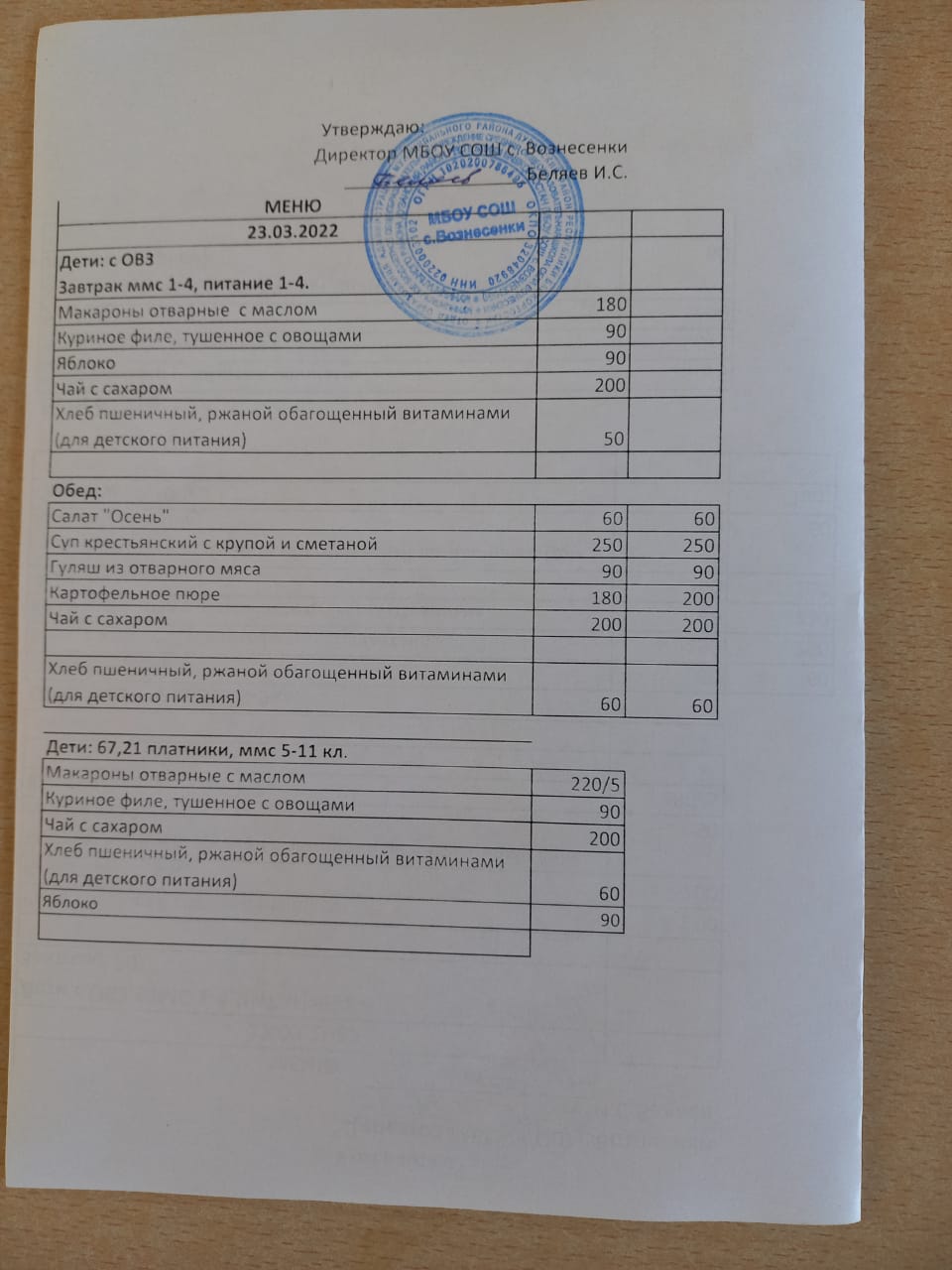 (завтрак 1-4 классы)