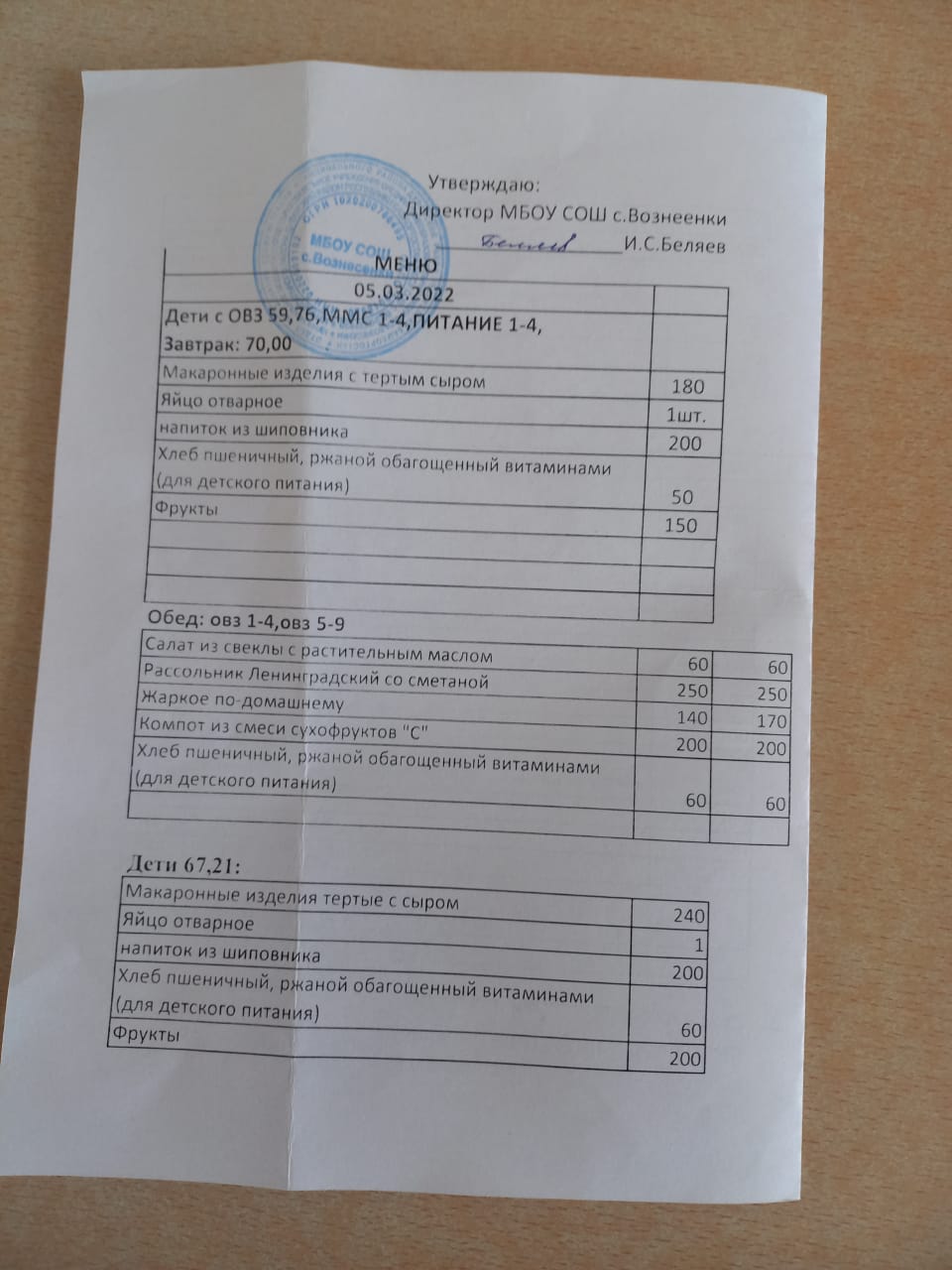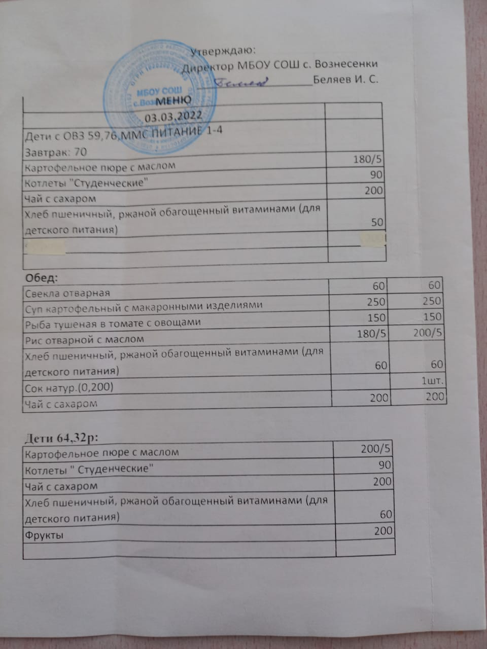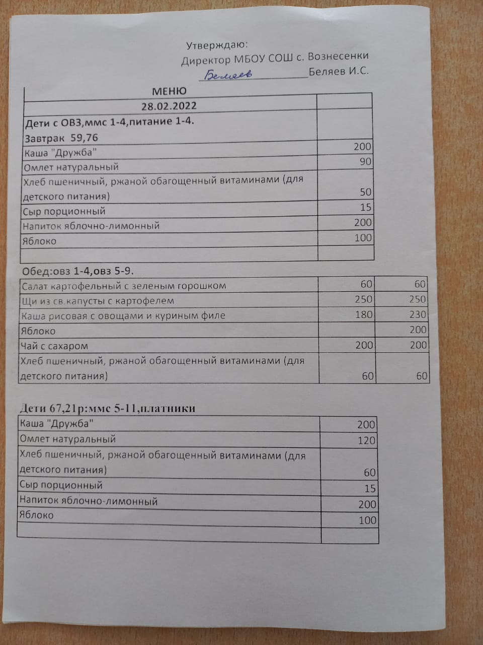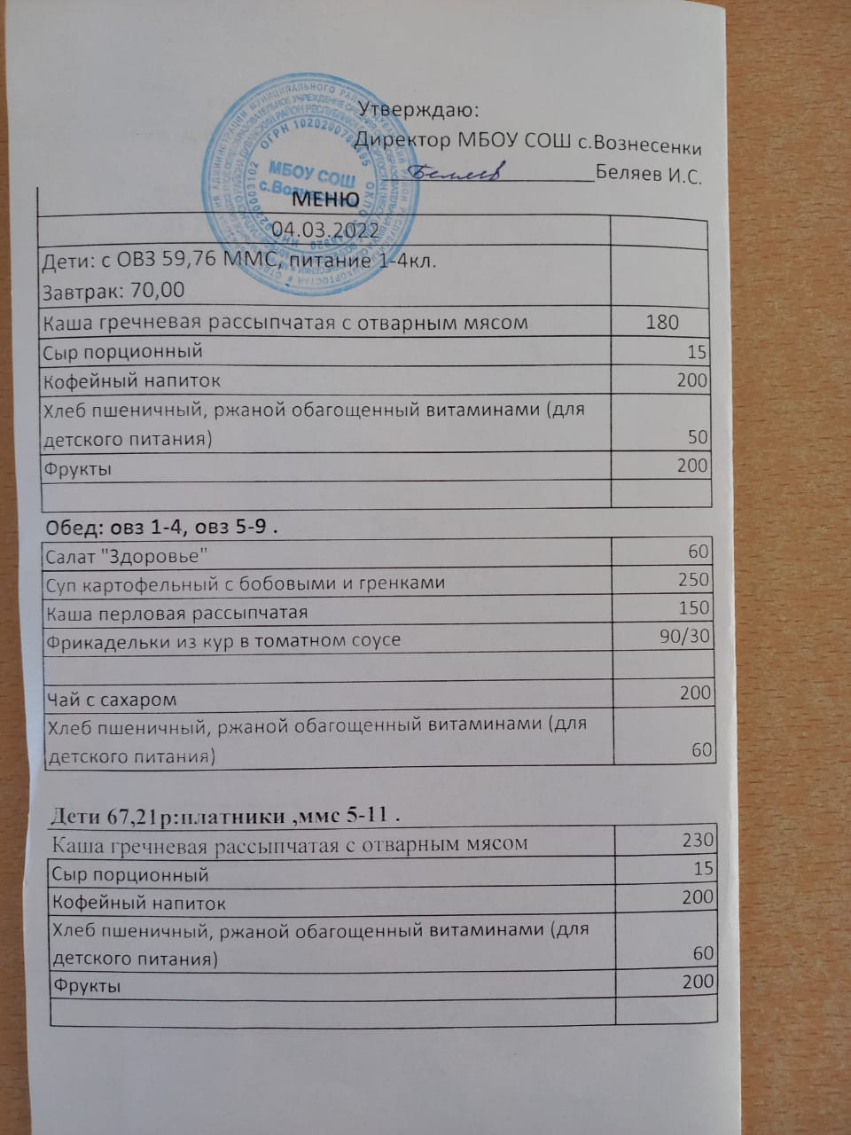 (завтрак 1-4 классы)