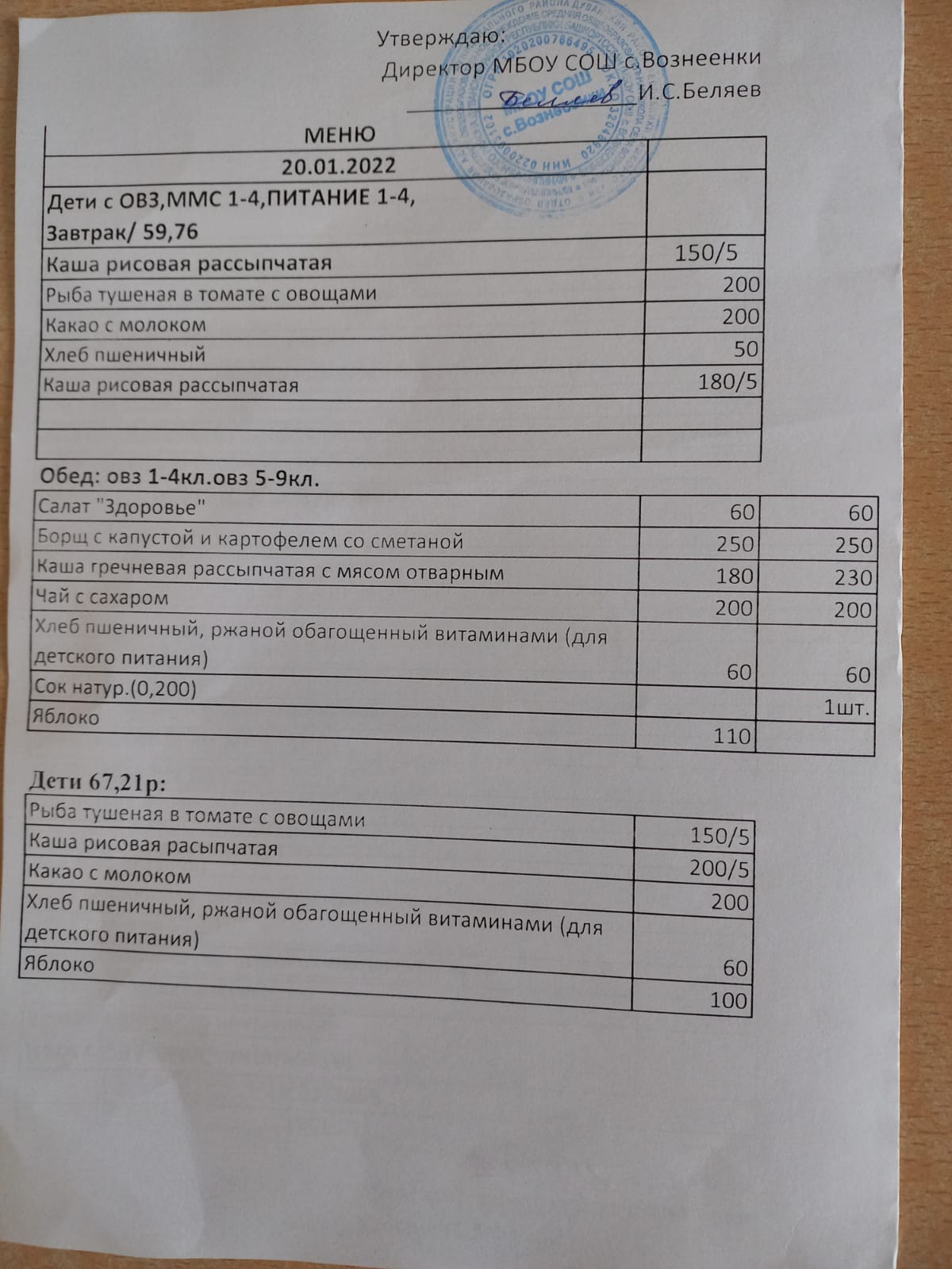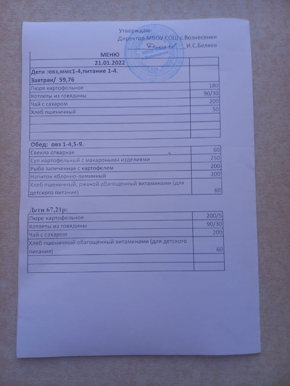 (завтрак 1-4 классы)