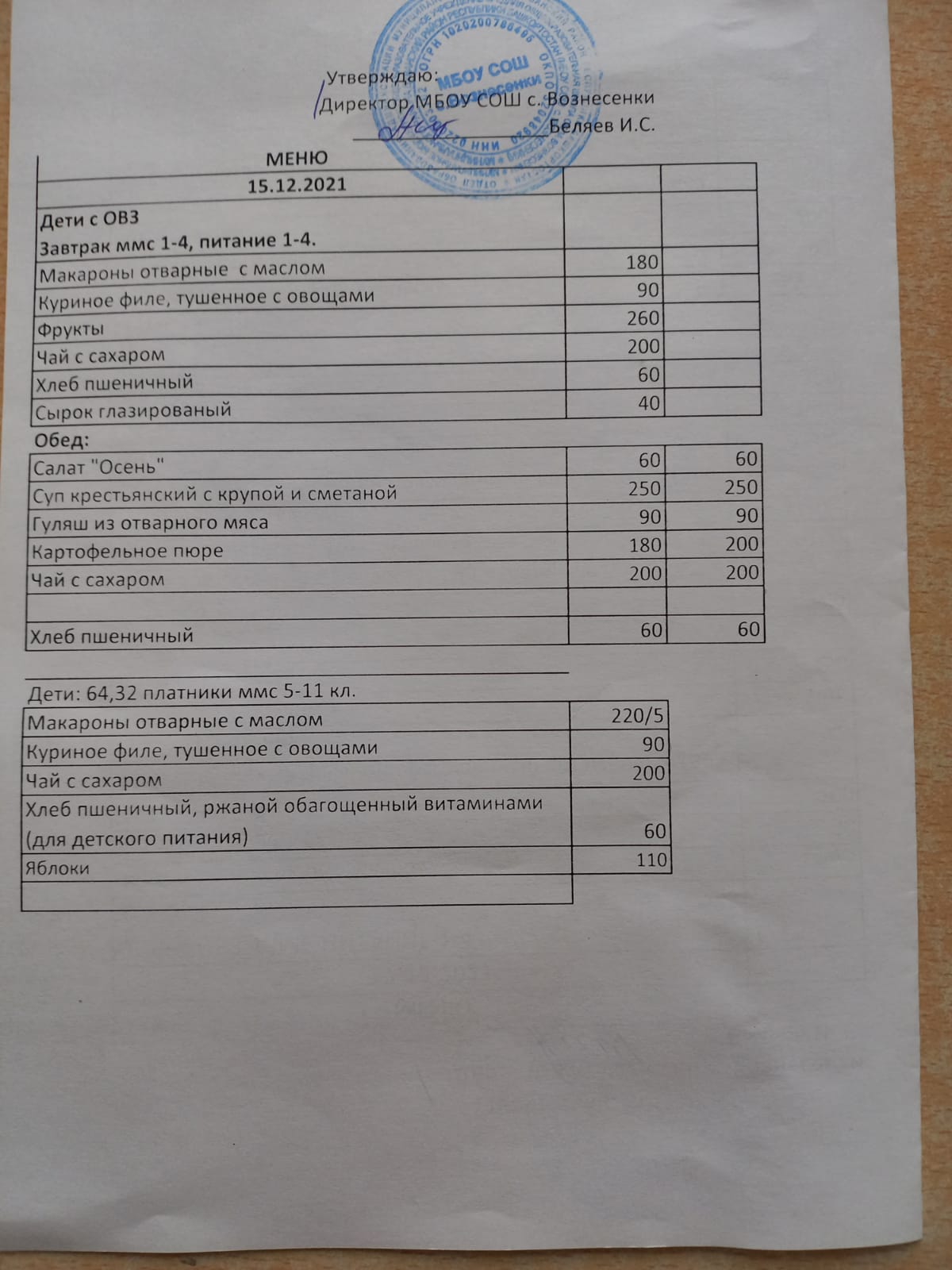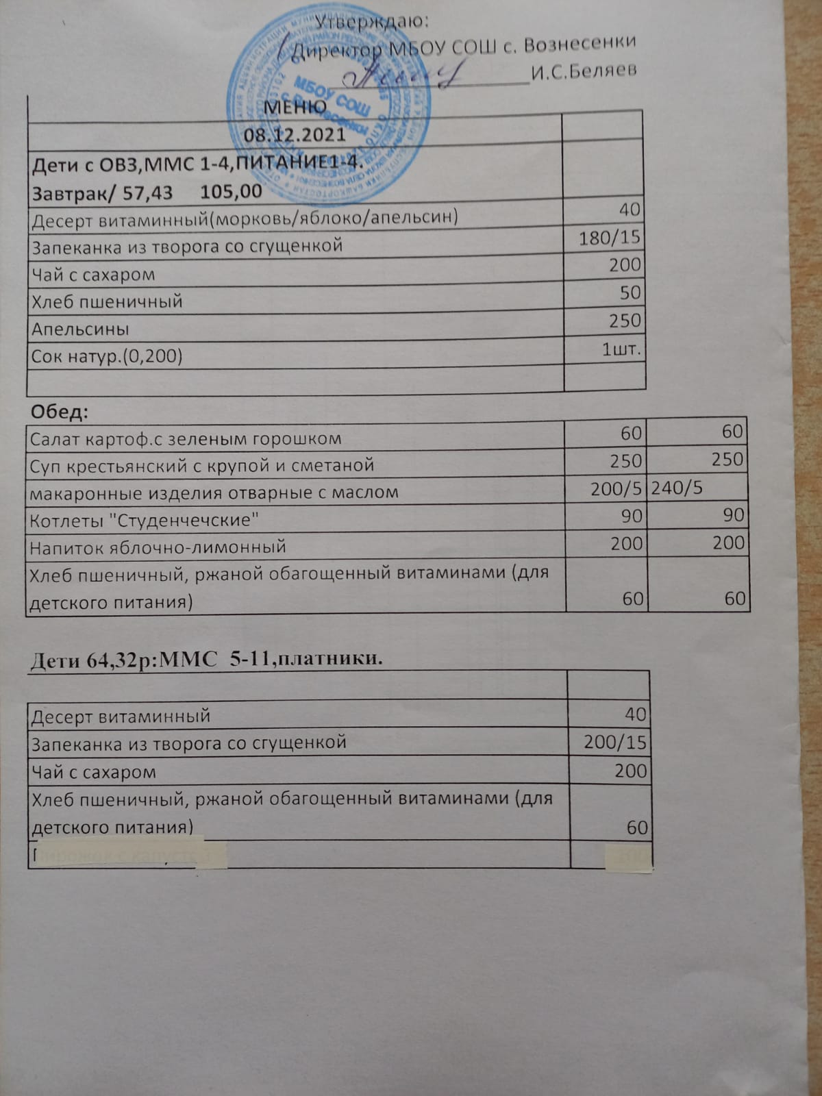 (завтрак 5-11 классы,ммс)